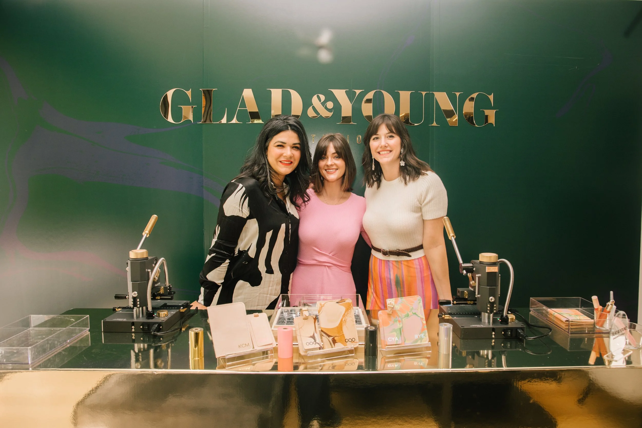 We can activate your event space and use a heat press to foil attendees’ initials on Glad & Young products. All products travel with us to event activations, minimizing logistical tracking on your end.